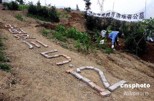 6月10日,在四川大地震重災區(qū)映秀鎮(zhèn)附近的山坡上,一座“汶川地震映秀遇難者公墓”正在建設(shè)當中。