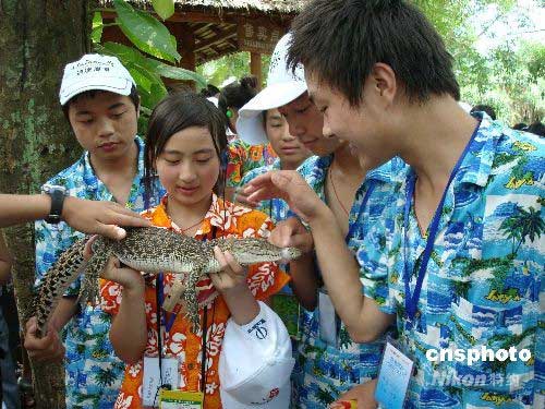 6月14日,89位震區(qū)失親兒童來到海南熱帶野生動植物園參觀游覽。據(jù)了解,此為孩子們15天心靈康復(fù)之旅中的最后一個旅游景點,他們將于16日上午搭乘南方航空的愛心專機返程。中新社發(fā) 陳少婷 攝