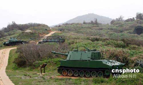 “戰(zhàn)爭與和平紀念公園”位于馬祖北竿后澳村后方大澳山,是由軍方撥出廢棄的大澳山軍事用地,由馬祖風景區(qū)管理處從2004年起投入上億元新臺幣興建。山道兩側(cè)放置有軍方除役的武器:自行火炮、迫炮戰(zhàn)、坦克等,引領(lǐng)游客體驗與感受冷戰(zhàn)時期東太平洋防線前線戰(zhàn)地的氛圍。中新社發(fā) 耿軍 攝