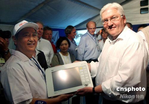6月15日,德國(guó)副總理兼外長(zhǎng)施泰因邁爾來到四川都江堰市中德紅十字野戰(zhàn)醫(yī)院,看望中德紅十字野戰(zhàn)醫(yī)院的德國(guó)專家和中方醫(yī)護(hù)人員。中新社發(fā) 黃榮 攝