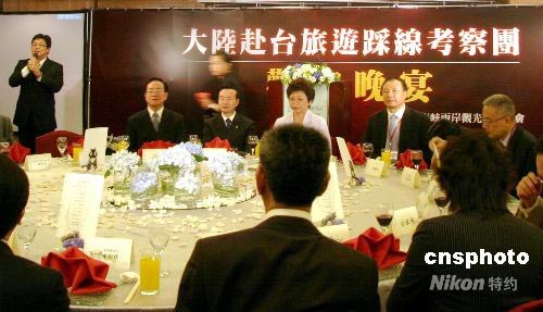 六月十六日,大陸赴臺旅游踩線考察團(tuán)一行抵達(dá)臺北。當(dāng)晚,臺灣海峽兩岸觀光旅游協(xié)會在臺北市晶華酒店設(shè)歡迎晚宴款待考察團(tuán)。中新社發(fā) 許曉青 攝