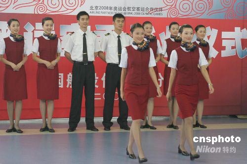 圖為“奧運(yùn)空乘”在結(jié)業(yè)儀式上進(jìn)行形象展示。中新社發(fā) 易世忠 攝