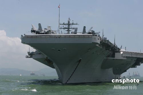 圖:美國(guó)核動(dòng)力航空母艦“里根號(hào)”訪港