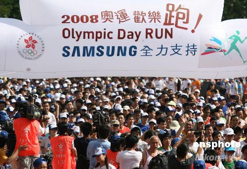 圖:香港市民參加"奧運(yùn)歡樂(lè)跑"迎接北京奧運(yùn)