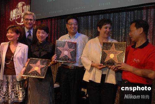 圖:中國(guó)赴美旅游首發(fā)團(tuán)獲頒好萊塢古銅星