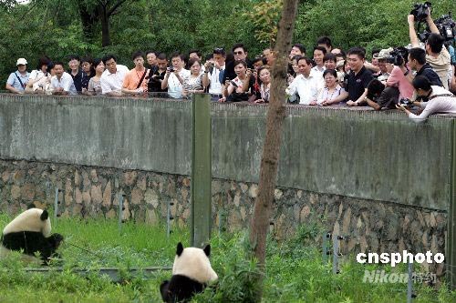 6月25日上午,臺(tái)北市長(zhǎng)郝龍斌一行到上海野生動(dòng)物園,看望大熊貓。中新社發(fā) 潘索菲 攝