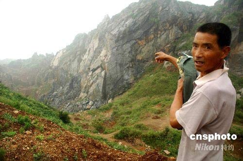 村民述說坍塌礦口情況。中新社發(fā) 繁文 攝