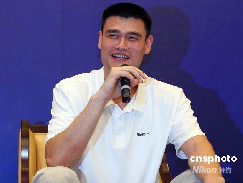 6月26日,剛抵達北京不久的姚明舉辦新聞發(fā)布會,向公眾介紹自己的傷勢恢復情況以及“姚基金”的籌備運作情況。他在回答記者提問時笑稱希望能得奧運銅牌。中新社發(fā) 富田 攝