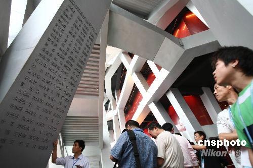 6月28日,北京奧運(yùn)會(huì)主體育場(chǎng)——國(guó)家體育場(chǎng)(“鳥巢”)正式落成,建設(shè)者的名字被刻在國(guó)家體育場(chǎng)落成紀(jì)念柱的背面。中新社發(fā) 盛佳鵬 攝