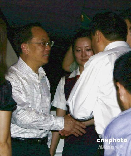 6月27日晚9點(diǎn)55分,香港特首曾蔭權(quán)一行乘坐CA428航班抵達(dá)成都雙流國際機(jī)場,28日將與澳門特首何厚鏵一起前往彭州和都江堰看望災(zāi)民及考察災(zāi)后重建情況。中新社發(fā) 黃永莉 攝