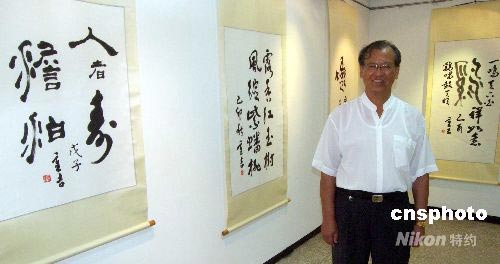 6月29日,臺灣澎湖本地書法家藍(lán)重吉的書法展揭幕,為迎接7月4日的大陸旅游首發(fā)團(tuán),屆時大陸旅游團(tuán)將攜帶八十多幅作品加入此次展出,兩地書畫同好將齊聚一堂,交換心得。中新社發(fā) CNA 攝