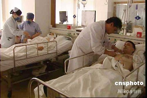 7月1日上午9時許,一名外地來滬歹徒持刀闖入上海閘北公安分局,連續(xù)捅傷多名民警和一名保安,隨即被民警當場擒獲。上海閘北公安分局受傷民警和保安被送往長征醫(yī)院和北站醫(yī)院搶救。目前,已有五名受傷民警犧牲,其他傷員正在全力救治中。中新社發(fā) 宣克炅 攝
