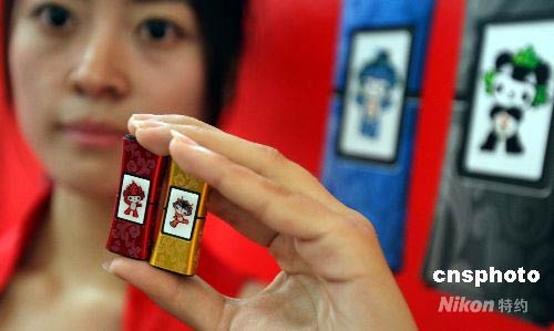 七月二日,北京2008年奧運(yùn)特許商品奧運(yùn)吉祥物電子紀(jì)念章、聯(lián)想火炬閃存盤(pán)等正式推向市場(chǎng)。特別是聯(lián)想奧運(yùn)吉祥物閃存盤(pán)由于價(jià)格適中、實(shí)用性強(qiáng),一上市就受到消費(fèi)者的喜愛(ài)。 中新社發(fā) 任海霞 攝