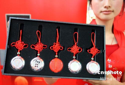 圖為奧運(yùn)特許產(chǎn)品聯(lián)想奧運(yùn)吉祥物電子紀(jì)念章。中新社發(fā) 任海霞 攝