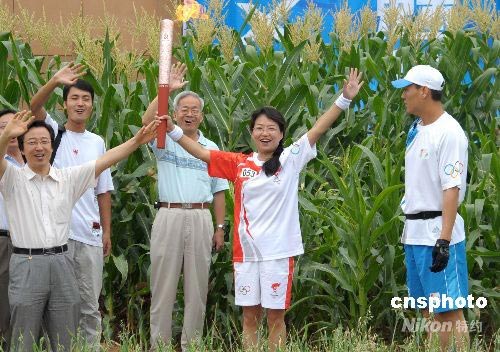 圖:奧運火炬在楊凌試驗農(nóng)田里傳遞