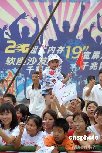 7月3日,奧運火炬在陜西楊凌傳遞,楊凌民眾熱情為奧運加油。中新社發(fā) 廖攀 攝