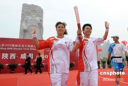 圖:奧運(yùn)火炬在陜西咸陽傳遞