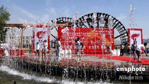 圖:奧運(yùn)火炬蘭州傳遞在"水車博覽園"結(jié)束