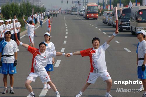 圖:呼和浩特火炬手優(yōu)美舞姿交接奧運(yùn)火炬