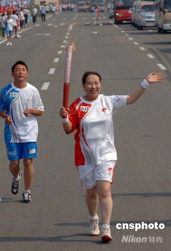 圖:女高音歌唱家牧蘭傳遞奧運(yùn)火炬