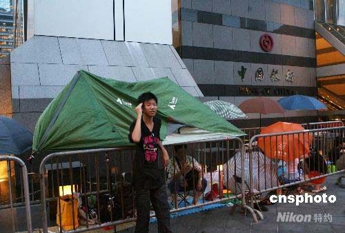 香港市民提前排隊(duì)等候奧運(yùn)紀(jì)念鈔票發(fā)行(2)