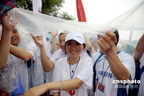 圖:延吉女大學(xué)生雨中為北京奧運(yùn)加油