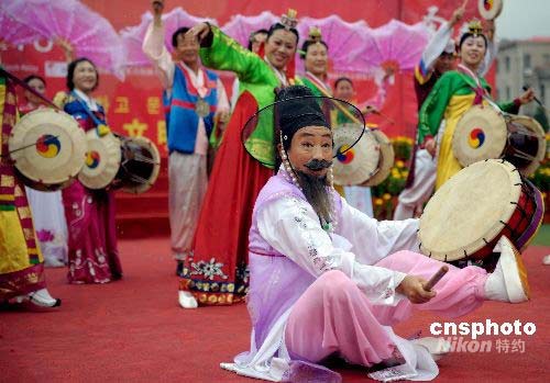 圖:延吉朝鮮族民眾載歌載舞歡慶奧運(yùn)火炬?zhèn)鬟f