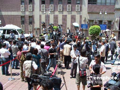 七月二十一日,臺(tái)北地方法院開(kāi)庭審理臺(tái)灣海軍前軍官雷學(xué)明控告陳水扁等人誹謗案。這是陳水扁卸任臺(tái)灣地區(qū)領(lǐng)導(dǎo)人后首度至法院出庭,臺(tái)灣媒體對(duì)此高度關(guān)注。圖為庭審結(jié)束后,陳水扁離開(kāi)時(shí),媒體仍鍥而不舍圍堵其坐車。中新社發(fā) 徐長(zhǎng)安 攝