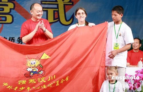 由國務(wù)院僑務(wù)辦公室主辦的“情系汶川——中外青少年心連心夏令營”在陜西省西安市開營。國務(wù)院僑務(wù)辦公室副主任趙陽出席開營儀式并授旗。中新社發(fā) 廖文靜 攝