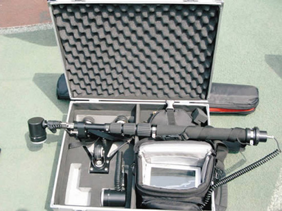 這種視頻探測(cè)器是于去年年底引進(jìn)的。它有廣角鏡頭,拍攝范圍比較廣,還可用于近距離觀察。檢查鏡探入車底時(shí)也運(yùn)動(dòng)自如,不會(huì)被損壞。探桿可以拉至所需要的長(zhǎng)度,對(duì)人工觀察不便的“犄角旮旯”進(jìn)行清晰觀察。視頻探測(cè)器表面上很不起眼:裝置設(shè)備的箱子,還不如一般的旅行包大。但它有一個(gè)能伸縮的棍狀探桿,能“看到”難以觀察的“死角地帶”,尤其在黑暗中,它還能自動(dòng)轉(zhuǎn)換為紅外攝像頭,顯示黑白圖像進(jìn)行搜索。