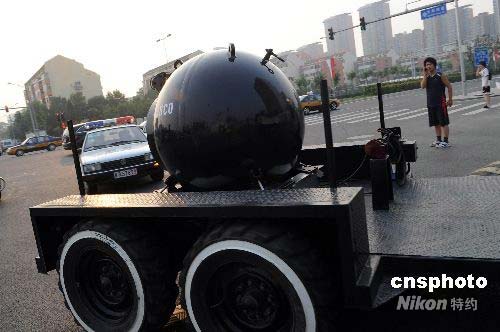 7月23日傍晚,北京警方將一批安保防恐設(shè)備運(yùn)抵奧運(yùn)會(huì)主場館區(qū)域。中新社發(fā) 陳文 攝