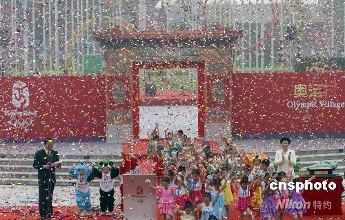 7月27日,北京奧運(yùn)村正式開村,中國代表團(tuán)也將舉行入住儀式。圖為漫天飛花慶祝奧運(yùn)村正式開村。中新社發(fā) 杜洋 攝
