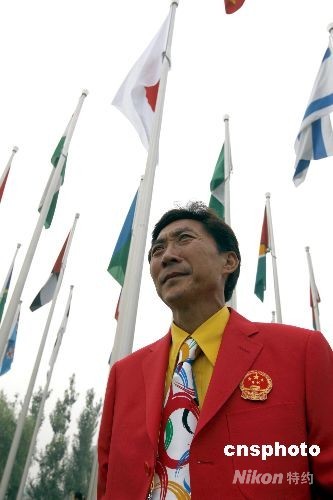 7月27日,北京奧運(yùn)村正式開(kāi)村。中國(guó)女子曲棍球隊(duì)的韓國(guó)籍主教練金昶佰在奧運(yùn)村旗陣前顯得信心十足。中新社發(fā) 杜洋 攝