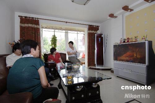 7月28日,奧運(yùn)村“前村民”李美鳳一家正在自家寬敞的房子里觀看奧運(yùn)村開村的相關(guān)新聞。北京奧運(yùn)會(huì)場(chǎng)館建設(shè)中共有六千余戶家庭、近一萬五千人被拆遷安置,其中百分之八十的拆遷戶與李美鳳一樣,搬到了奧林匹克綠地內(nèi),其他的拆遷戶則被安置在新建奧運(yùn)場(chǎng)館的周圍。 中新社發(fā) 王東明 攝