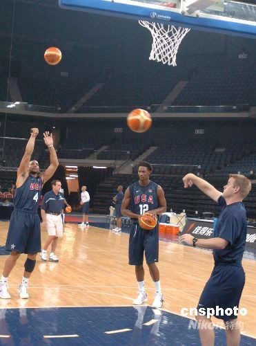 圖為七月二十八日美國(guó)男籃在澳門進(jìn)行訓(xùn)練。中新社發(fā) 畢永光 攝
