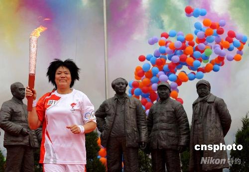 奧運(yùn)火炬在革命圣地河北西柏坡傳遞