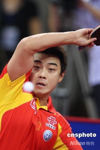 圖為王皓在男團比賽中輕松取勝。中新社發(fā) 盛佳鵬 攝