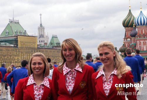 7月29日,俄羅斯總統(tǒng)梅德韋杰夫在克里姆林宮為參加北京奧運(yùn)會(huì)的俄羅斯代表團(tuán)舉行送行儀式,鼓勵(lì)本國運(yùn)動(dòng)員爭創(chuàng)佳績。俄羅斯奧運(yùn)代表團(tuán)將于近日陸續(xù)抵達(dá)北京。圖為身穿奧運(yùn)禮服的俄羅斯女運(yùn)動(dòng)員在紅場留影。 中新社發(fā) 田冰 攝