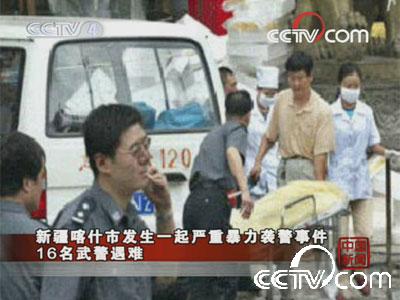 據(jù)中央電視臺報道,8月4日上午8時許,新疆喀什市邊防支隊集體出早操行至一賓館時,突遭2名作案分子駕車襲擊,并引發(fā)車上的爆炸物,當(dāng)場造成16人死亡,16人受傷,2名作案人員已經(jīng)被抓獲,案件正在進一步審理中。