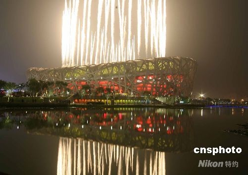 圖:第29屆夏季奧運(yùn)會(huì)盛大開幕焰火映天(2)