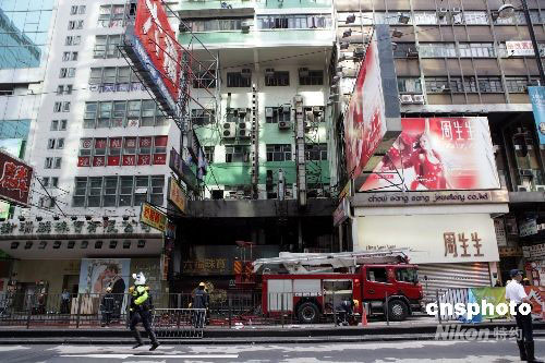 八月十日下午三時許,香港旺角嘉禾大廈的五級火警被救熄,此次大火中兩名消防員殉職,一名老婦死亡,另五十六人受傷。火警在當(dāng)天九時許發(fā)生,焚燒了近六個小時。中新社發(fā) 洪少葵 攝