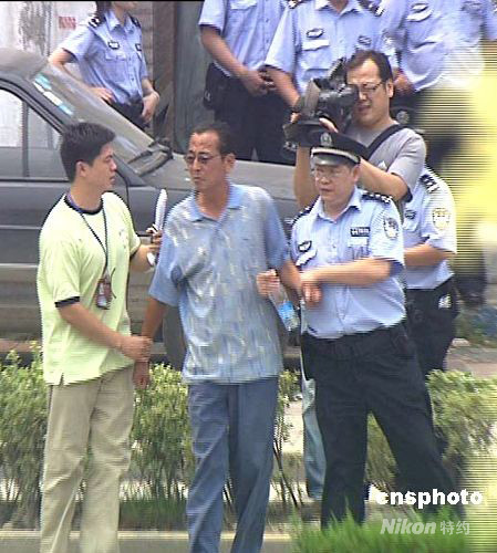 8月13日上午9時(shí)52分,上海市公安局110指揮中心接報(bào):15分鐘前,一陌生男子進(jìn)入嘉定區(qū)某建設(shè)有限公司,因房產(chǎn)糾紛商談不成,遂以虛假的爆炸物相威脅,限制了該公司總經(jīng)理的人身自由。接報(bào)后,指揮中心迅速指令嘉定公安分局等單位前往處置。中午12時(shí)30分,經(jīng)過警方工作,犯罪嫌疑人自已走出真新商務(wù)樓,被限制人身自由的總經(jīng)理安然無恙。目前,張某已被依法刑事拘留。圖為上海警方抓獲“限制人身自由案” 嫌疑犯張某。中新社發(fā) 宣克炅 攝