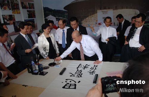 八月十四日,中國國民黨主席吳伯雄回到祖籍地--福建永定縣下洋鎮(zhèn)思賢村,在參觀思賢小學(xué)揮毫寫下“思賢村”三個大字。當(dāng)天,吳伯雄夫婦時隔八年再度返鄉(xiāng)祭祖。中新社發(fā) 鄭祚聲 攝