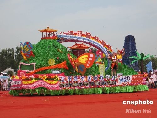 8月30日,由國(guó)家旅游局、遼寧省政府主辦的2008中國(guó)沈陽(yáng)國(guó)際旅游節(jié)開(kāi)幕,開(kāi)幕式上舉辦了國(guó)內(nèi)外花車(chē)巡游。中新社發(fā) 沈殿成 攝