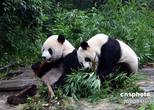 9月9日上午,海協(xié)會會長陳云林來到位于雅安的中國保護大熊貓研究中心碧峰峽基地,探望汶川大地震后轉(zhuǎn)移到這里的贈臺大熊貓“團團”和“圓圓”的生活情況,隨后,陳云林還參觀了熊貓幼兒園,探望了地震后出生的十三只小熊貓。中新社發(fā) 黃永莉 攝