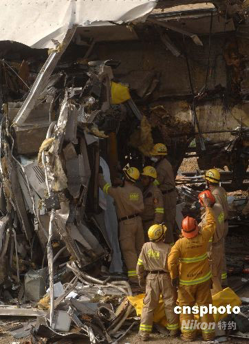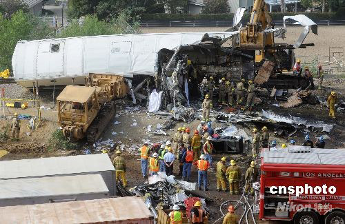 當(dāng)?shù)貢r(shí)間九月十三日上午,救援人員在嚴(yán)重受損的列車車廂里搜尋遇難者遺體。十二日下午,距離洛杉磯市中心四十公里的近郊發(fā)生一起客運(yùn)通勤列車與貨運(yùn)列車相撞的嚴(yán)重事故,至少造成26人死亡,130多人受傷。中新社發(fā) 張煒 攝