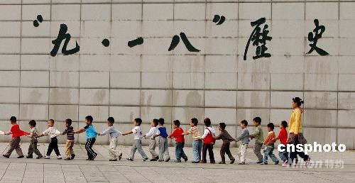9月17日,在沈陽“九·一八”歷史博物館,幼兒園小朋友在老師的帶領(lǐng)下參觀。