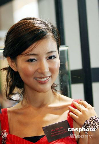 九月十八日,應(yīng)屆香港小姐季軍馬賽應(yīng)邀到“香港珠寶鐘表展”上,為香港珠寶制造業(yè)廠商主辦的“2008首飾設(shè)計(jì)比賽”擔(dān)任評(píng)判。中新社發(fā) 洪少葵 攝