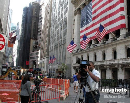 華爾街連日來大事連連,成為全世界媒體關(guān)注的新聞熱點(diǎn)。9月19日,多家媒體守候在紐約證券交易所門外,隨時(shí)準(zhǔn)備播報(bào)華爾街第一手動(dòng)態(tài)。中新社發(fā) 魏晞 攝