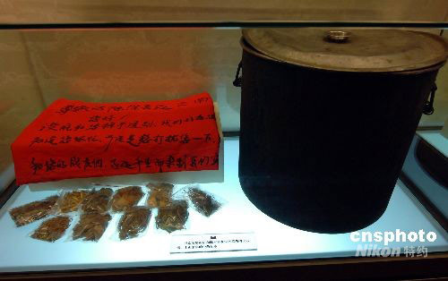 圖為由抗震英雄“神軍醫(yī)”--云南邊防總隊醫(yī)院院長陳本善使用的中草藥(標(biāo)本)和熬制中草藥湯劑的大鍋(文物)。中新社發(fā) 鄒憲 攝